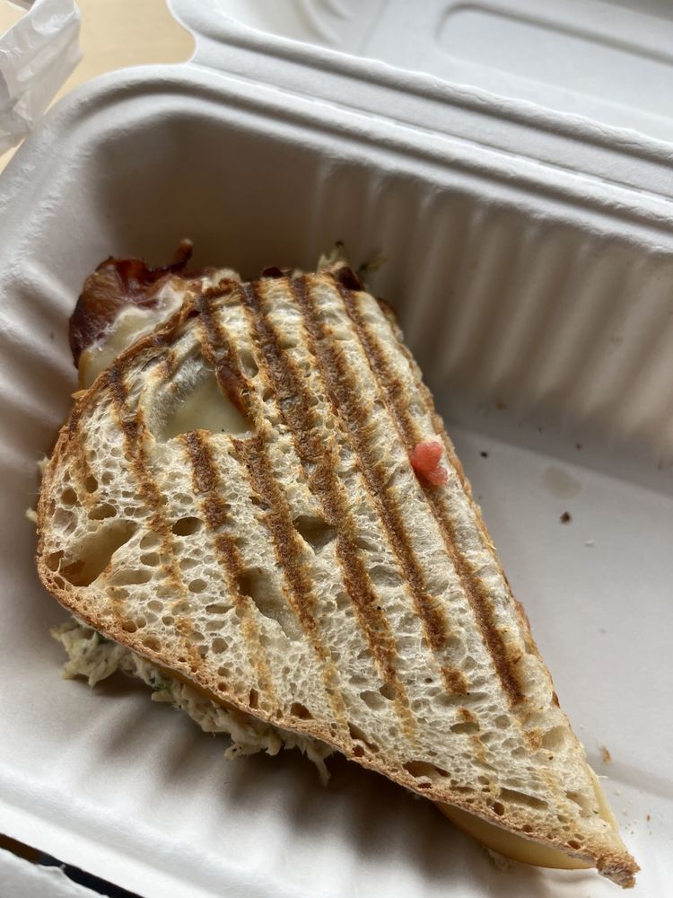 Chicken salad, peppered bacon, smoked chicken breast, Gouda cheese and tomato.